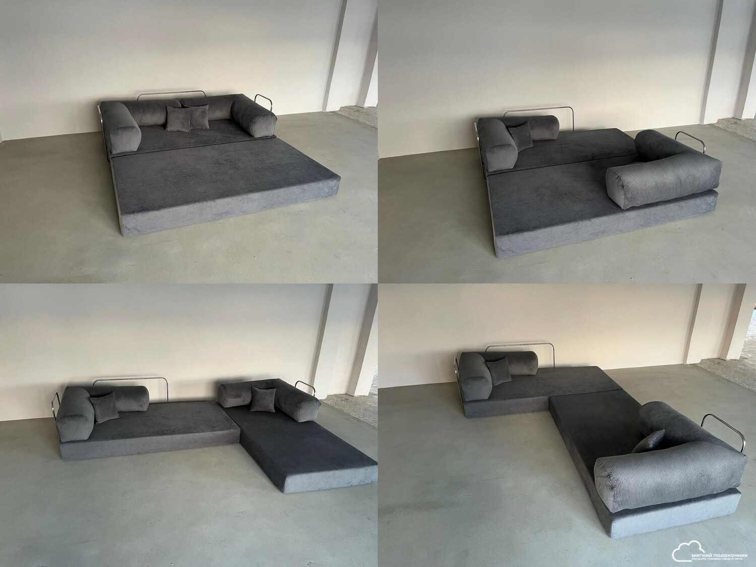 Диван-трансформер TEDDY — состоит из двух матрасов и угловых подушек! Каждый матрас и угловая подушка оснащены антискользящим покрытием! За счет данного покрытия подушки и матрасы полностью неподвижны под весом человека!